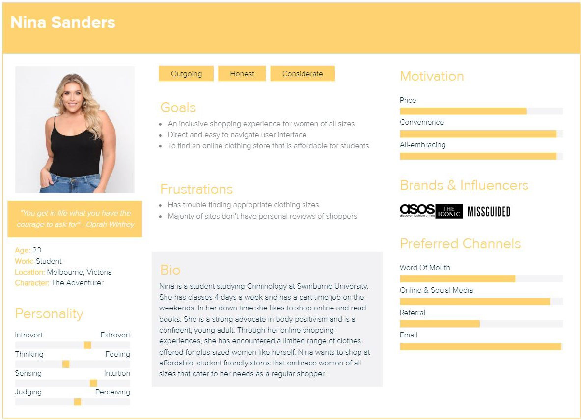 Nina's goals are to find an inclusive shopping experience